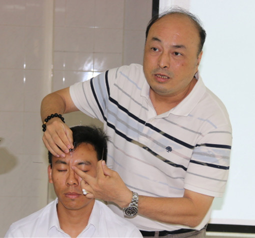 “秦氏飞针”创始人、广东省第二中医院康复科主任秦敏首先向学习班成员展示了秦氏头皮针的发展成果。他将秦氏头皮针与传统头皮针二者进行了对比,从其源流、治疗原理、医学价值等方面分析了秦氏头皮针的优势。他还分享了自己运用头皮针治疗如小儿脑瘫、中风、视野狭窄等疑难病例的心得体会。秦敏在现场展示了秦氏头皮针的技法,快速、精准的飞针手法让在场的成员啧啧称奇。
