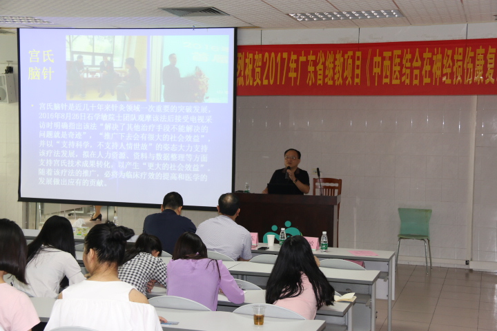 “宫氏脑针”是顺德区中西医结合医院主任盘庆东非常推崇的一种用于治疗脑瘫的新技术,“将其‘调神经治大病’的作用发挥出来能安全有效地解决众多脑瘫患者求医无门或疗效欠佳的困境”。盘庆东将“宫氏脑针”治疗三个疗程的脑瘫病例进行了细致的追踪和观察分析,并将研究结论与在场人员一起分享。