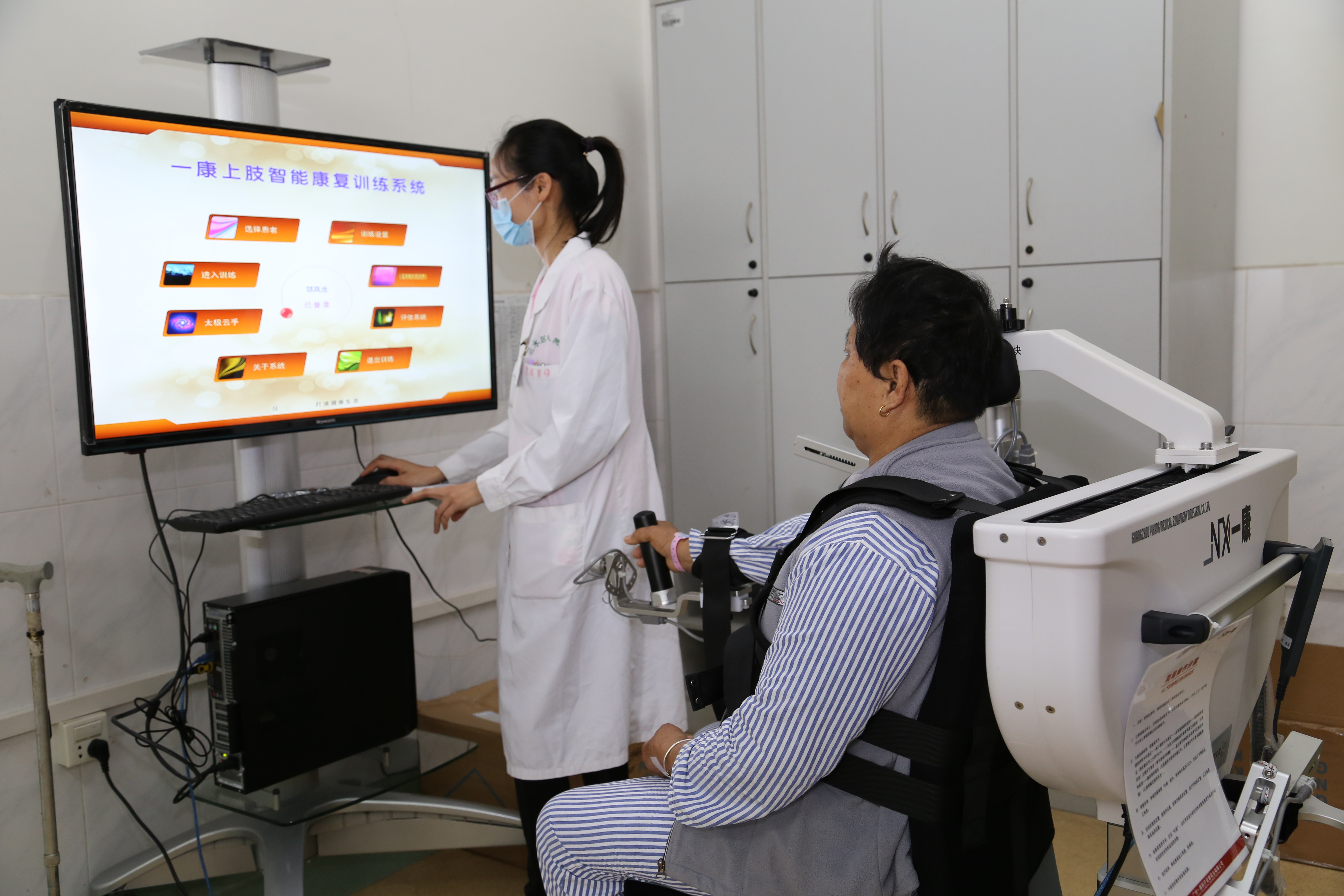 上肢智能反馈训练系统是运用计算机技术实时模拟,主要针对上肢运动功能障碍的患者,通过机器人的机械本体和控制系统,帮助患者进行科学有效的康复治疗,有效促进神经系统的功能重组、代偿和再生,有效延缓肌肉萎缩和关节挛缩,同时提高患者的上肢运动能力,改善患者的生活质量。也解放了康复治疗师的部分体力,优化了医护资源,让治疗师更加专注于病人,能够更好地利用他们的临床技能来为病人提供更优质的医疗服务。