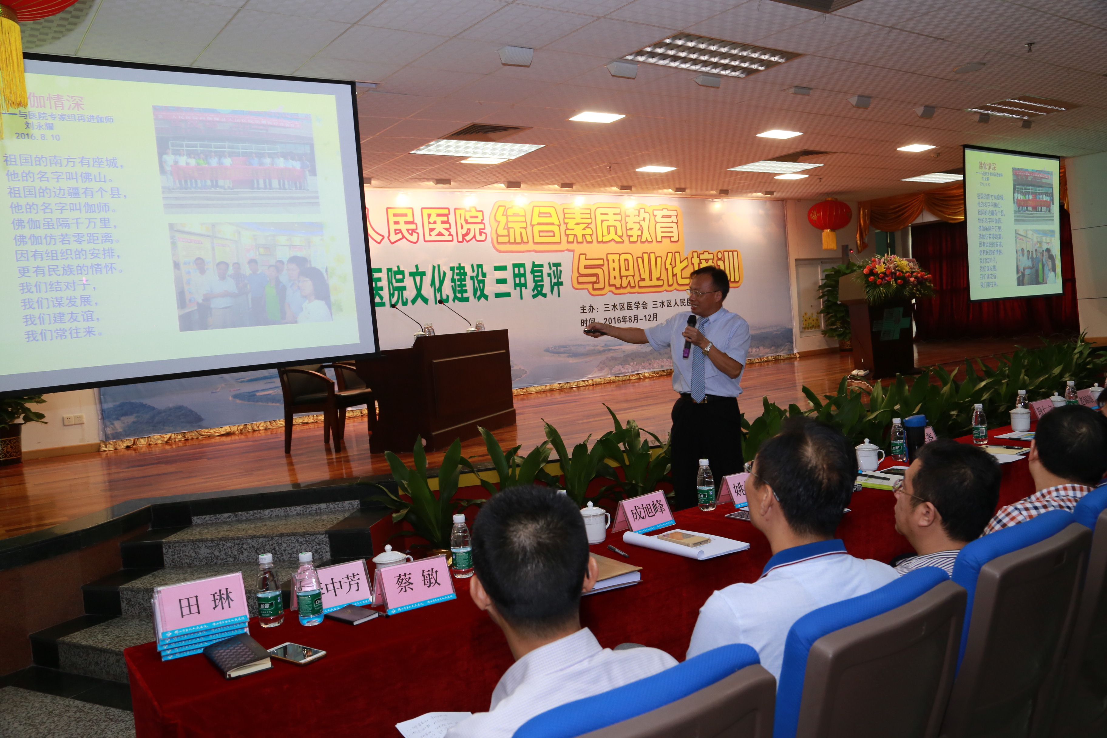本月27日,三水医学会联合区人民医院开展中层管理人员综合素质教育和职业化培训,三水近400名医务人员参加。区人民医院院长老锦雄表示,希望以此促进医院管理水平整体提升,推进三甲复评进程,加快培育医院优质品牌。“做一个合格的医务人员,要做好4个‘修’——理念之修、德行之修、素养之修、胸怀之修。”当日上午,市第一人民医院党委书记刘永耀以《做事先做人,做人先修身》为题拉开培训帷幕。