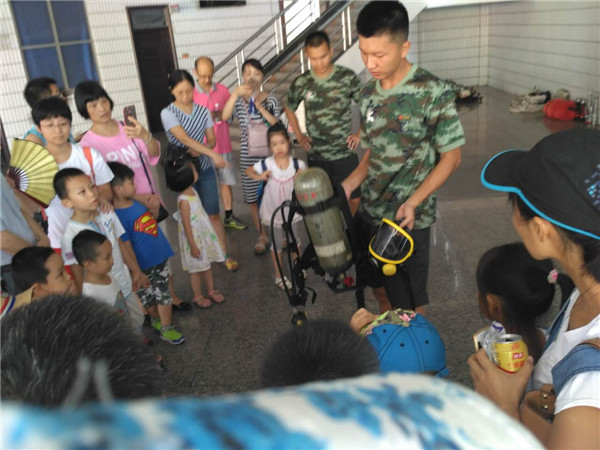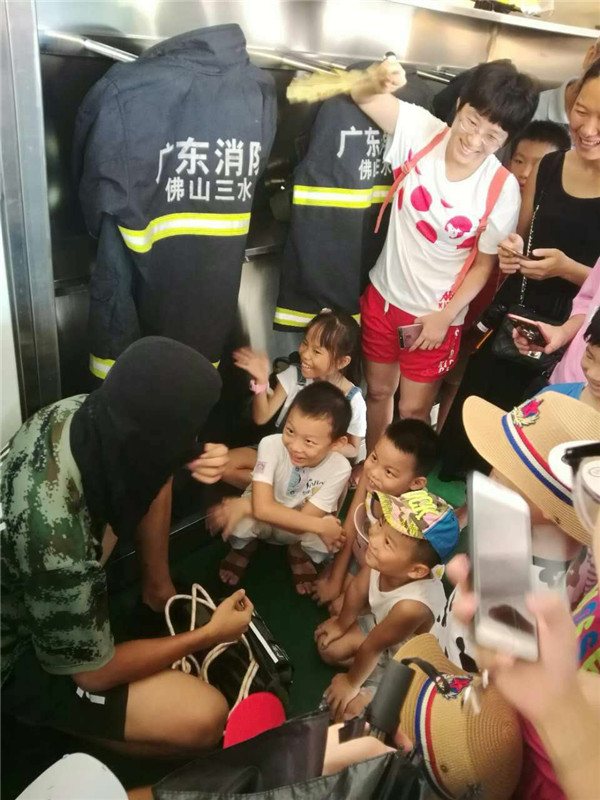 此次活动在三水消防大队驻地进行。活动中,消防员为亲子团讲解了火灾的危害、如何预防、发生火灾如何逃生等内容,并现场展示和介绍各种消防车、消防器材、战斗装备等。