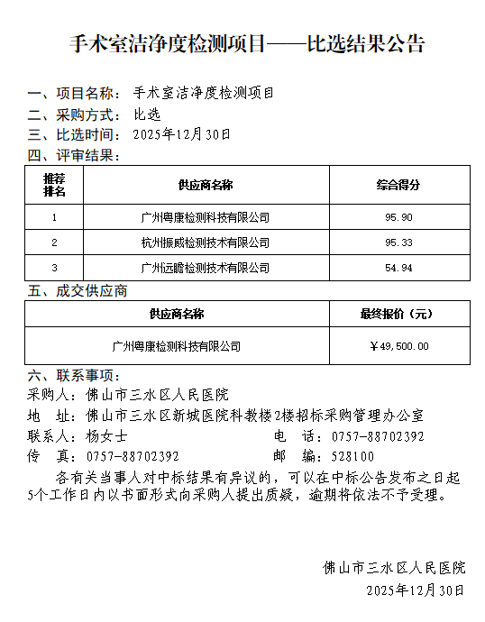 手术室洁净度检测项目——比选结果公告