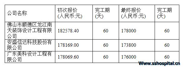 经竞争性谈判,我院消防门采购项目最终评委意见一致通过第一中标单位为安盛信达科技股份有限公司,第二中标单位为广东美科设计工程有限公司,最终报价如下: