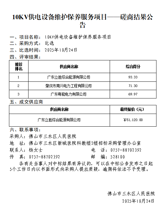10KV供电设备维护保养服务项目--磋商结果公告