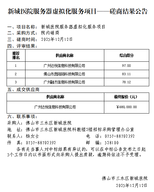 新城医院服务器虚拟化服务项目——磋商结果公告